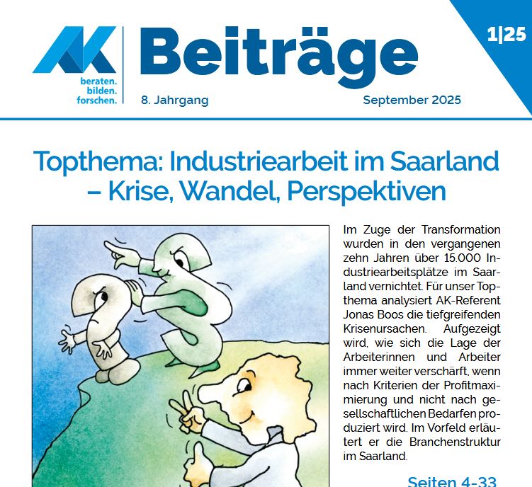 Die Bestellung unserer Publikationen ist für unsere Mitglieder (alle sozialversicherungspflichtig beschäftigten Arbeitnehmerinnen und Arbeitnehmer im Saarland, Grenzgänger und Arbeitssuchende) sowie für alle saarländischen Mitarbeitervertretungen kostenlos.